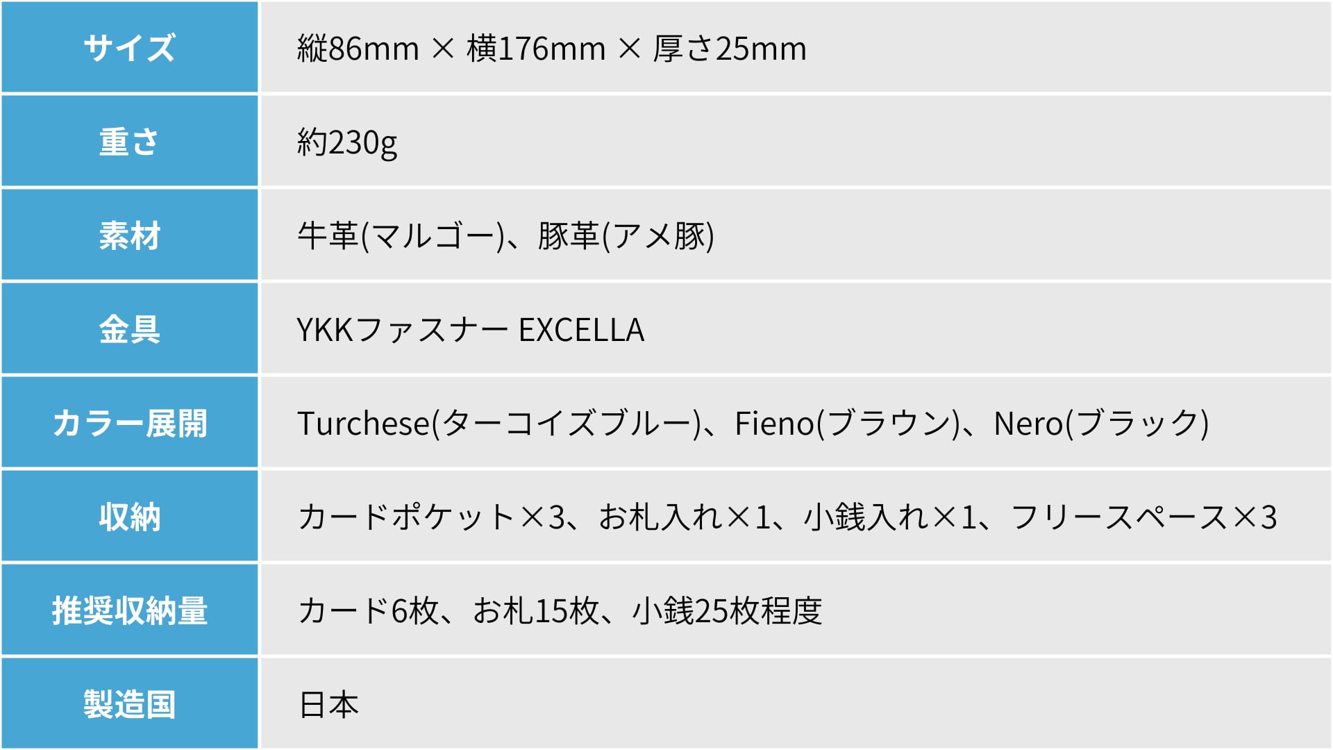 金具:YKK EXCELLAファスナー(小銭入れはロックファスナー)