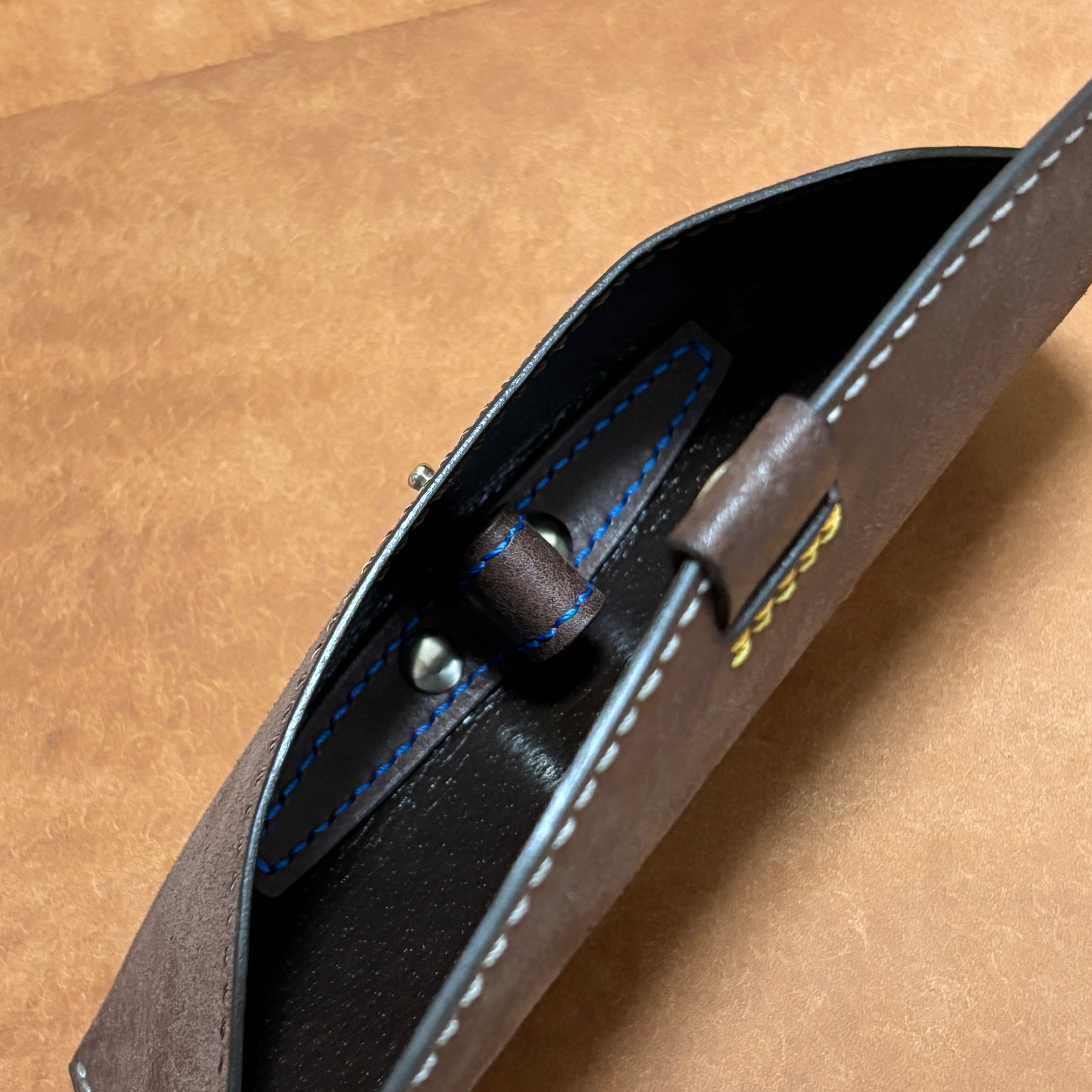イタリアンレザー マルゴーを使用し、手縫いで仕上げたメガネケースです。