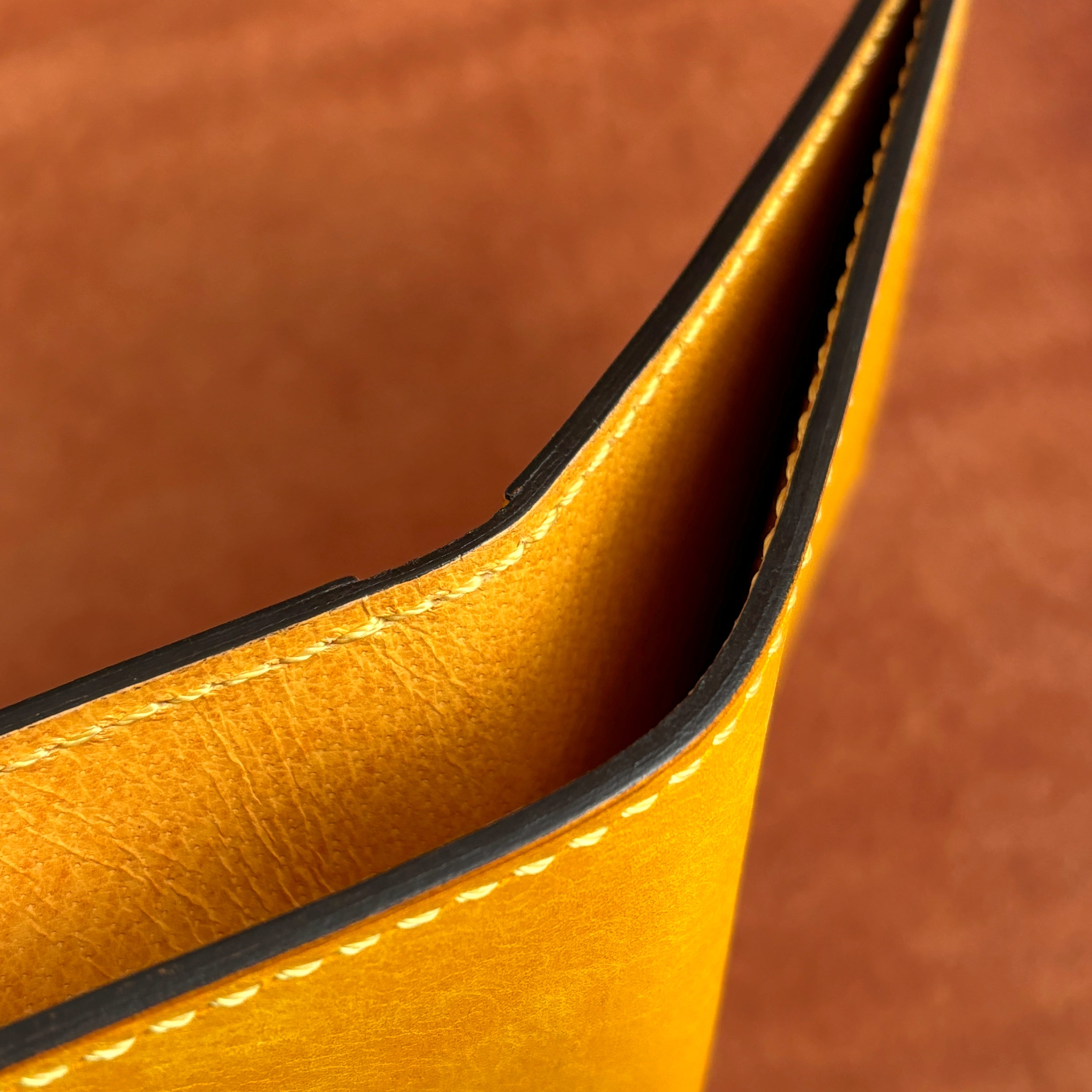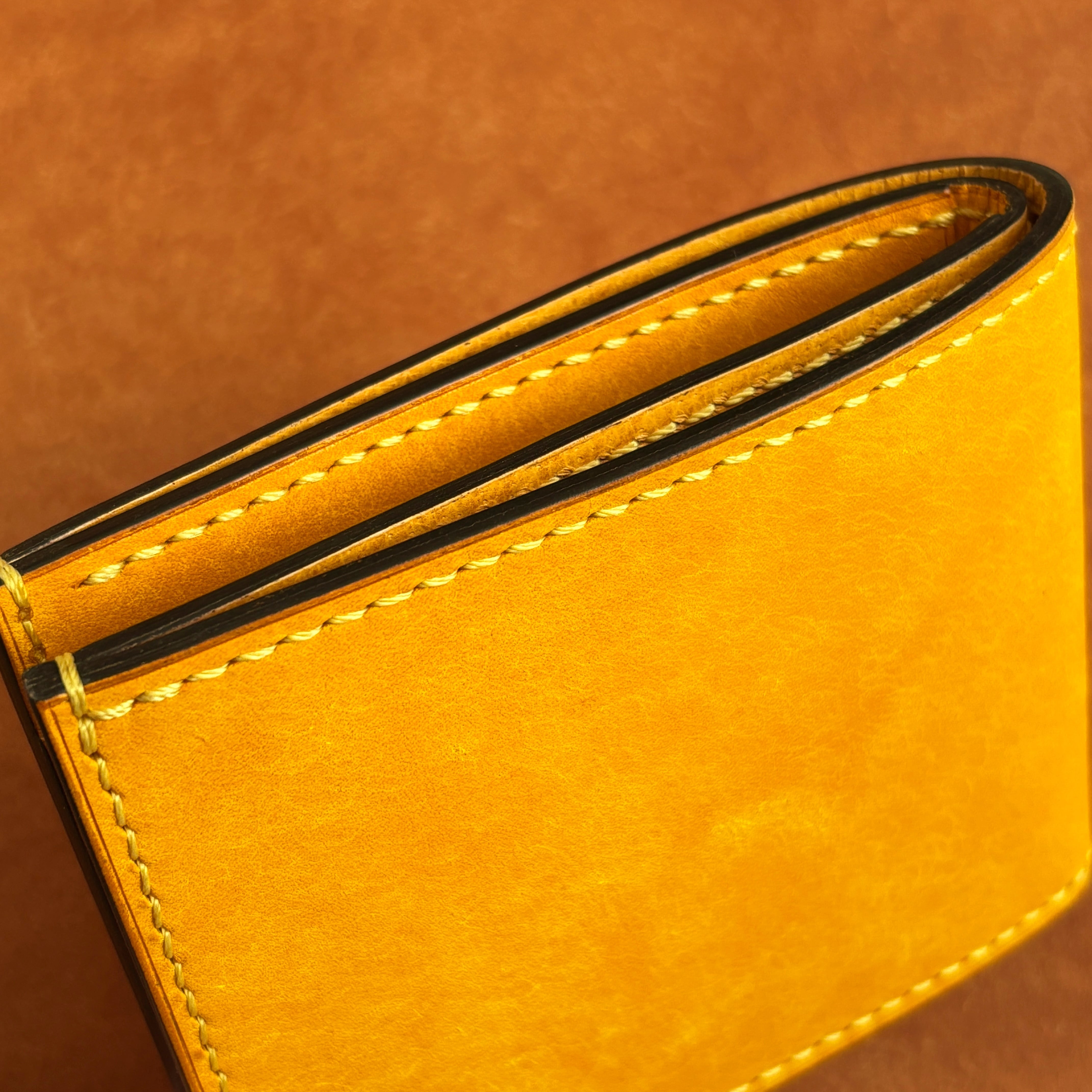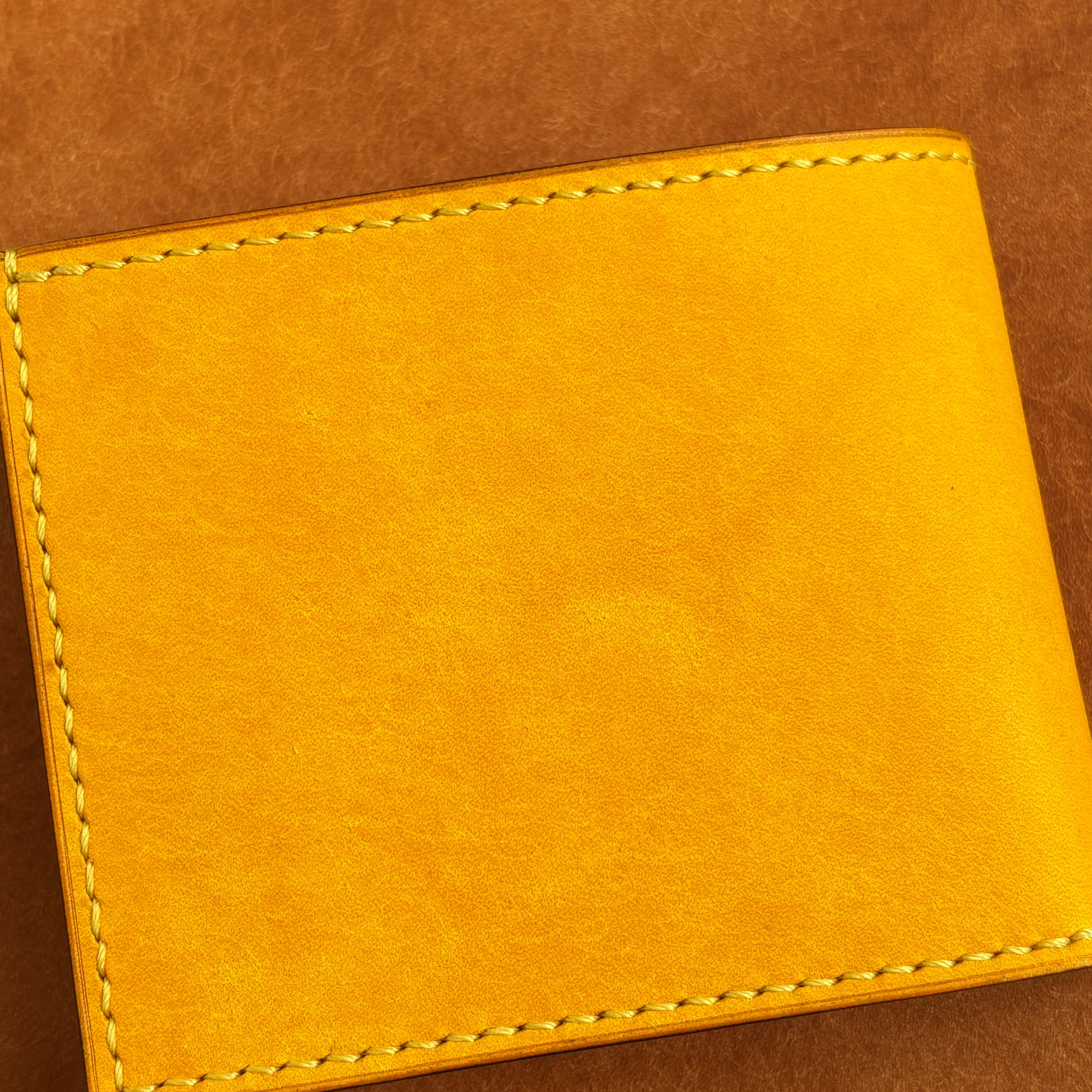 イタリアンレザー マルゴーを使用し、手縫いで仕上げた二つ折り財布です。