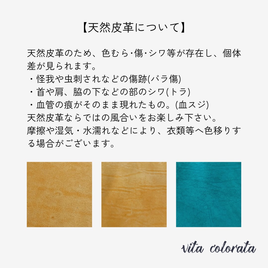 天然皮革のため、色むら・傷・シワ等が存在し、個体差が見られます。